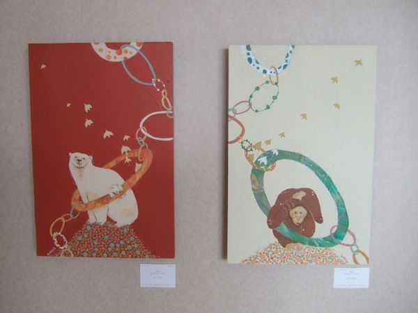 絵本の挿絵に使われそうな幻想風景の中に佇む動物たち。シロクマの何とも言い難い表情が妙に気に入ってしまいました。