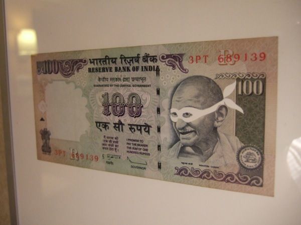 上の作品のインド紙幣バージョン。