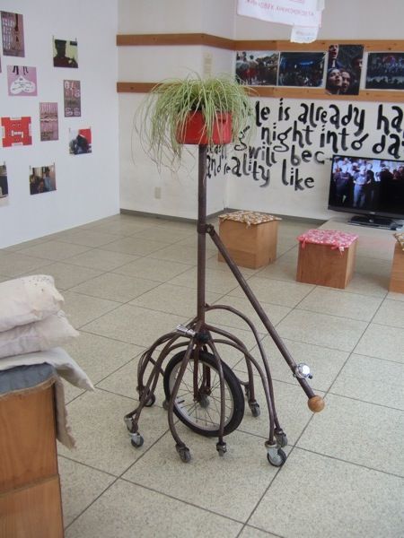 八木兵錦6号館に展示されているこの作品、鉢植えにキャスターがついており、シリーズ名の通りモバイルなのですが、なんと来場者が実際に町中を引っぱり歩くことができます。2010のベニス建築ビエンナーレでも出展されており、それ以外でも世界各地で引っ張り回されているグローバルな一品です。