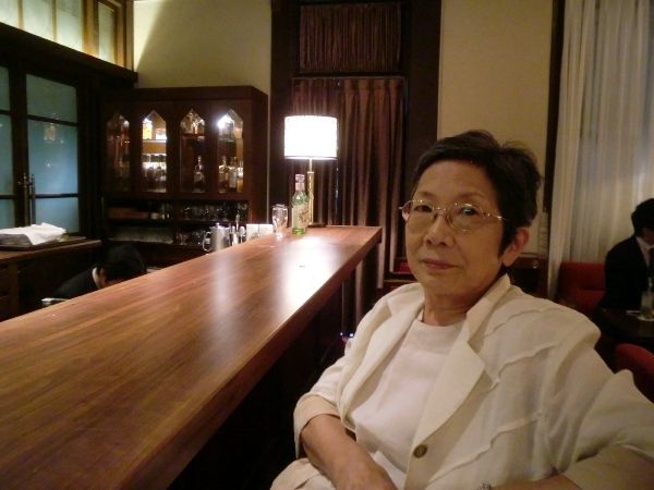 バーのカウンターで。