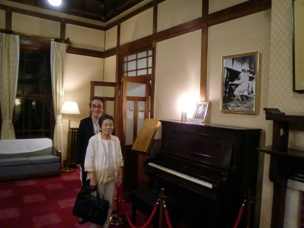 アインシュタインが弾いたピアノの前で。