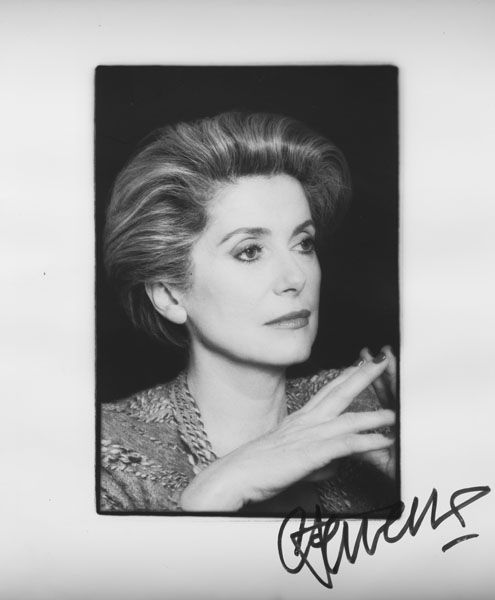 さて午後になり、その日二度目の撮影現場に行くと、ドヌーヴは一瞬、やはり怪訝な顔をしたのだが、モノクロの写真を見せると喜んでくれ、二枚ぐらいにすらすら慣れた手つきでサインをしてくれた。次に、もっと喜んでもらえるつもりでチョコレートの箱を渡したところ、それまでフランス語で喋っていたドヌーヴが、なんと英語で「アイ・ドント・ライク・チョコレート!」とはっきり言ったのだ。まわりは唖然、呆然! どうなることかと思われたのだが、撮影は無事に終了。さすが大女優の振舞である。