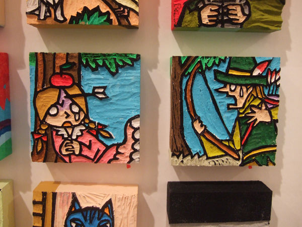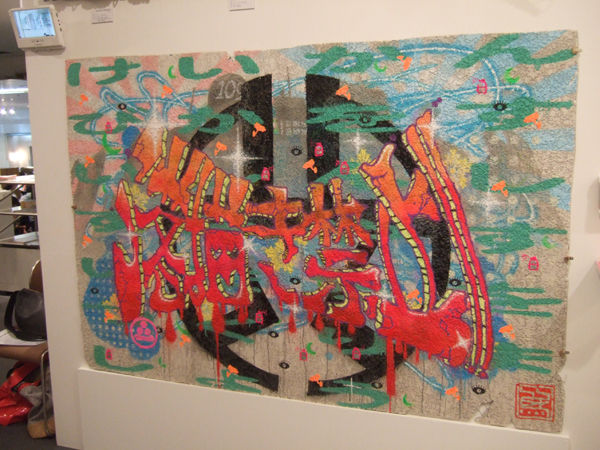 一見するとグラフィティが落書き禁止の看板を皮肉っている状況を描いたような作品に見えますが、こちら、本物です。作家さん曰く、自宅の壁にグラフィティを描き、それを壁ごと切り出して今回展示しているとのこと。