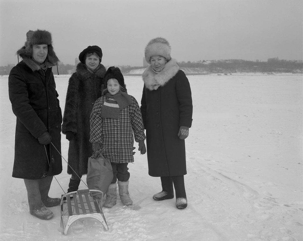 白い毛皮の帽子をかぶった右側の堂々とした女性は左の男性の妻だ。ソフトな雰囲気の彼となかなかいい組合わせで、バッグを提げて前に立っている少女は彼らの娘にちがいない。