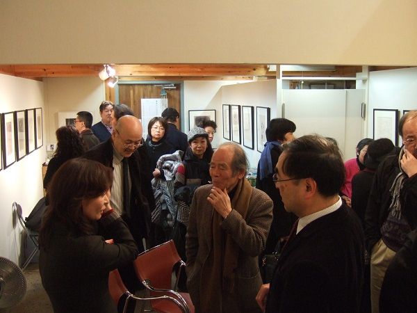 本ブログに「瀧口修造の箱舟」を連載中で今回の「瀧口修造展-Ⅰ」の企画監修者である土渕信彦さんの池田龍雄先生紹介から始まったこのギャラリートーク。特攻隊員として出撃する直前に終戦を迎え、その後、現代美術の展開と歩みを共にしてきた池田先生は、昨年85歳になられてなお、現役の作家として精力的に制作されており、この日も画廊いっぱいに詰め掛けた(とはいえ画廊が小さいので20名ほどですが)来場者へ事実を淡々と、しかし熱意をもって語って下さいました。永年にわたって日記をつけていらっしゃるためでしょうか、その記憶は具体的かつ詳細で、まさに戦後美術の生き証人との感を強く持ちました。