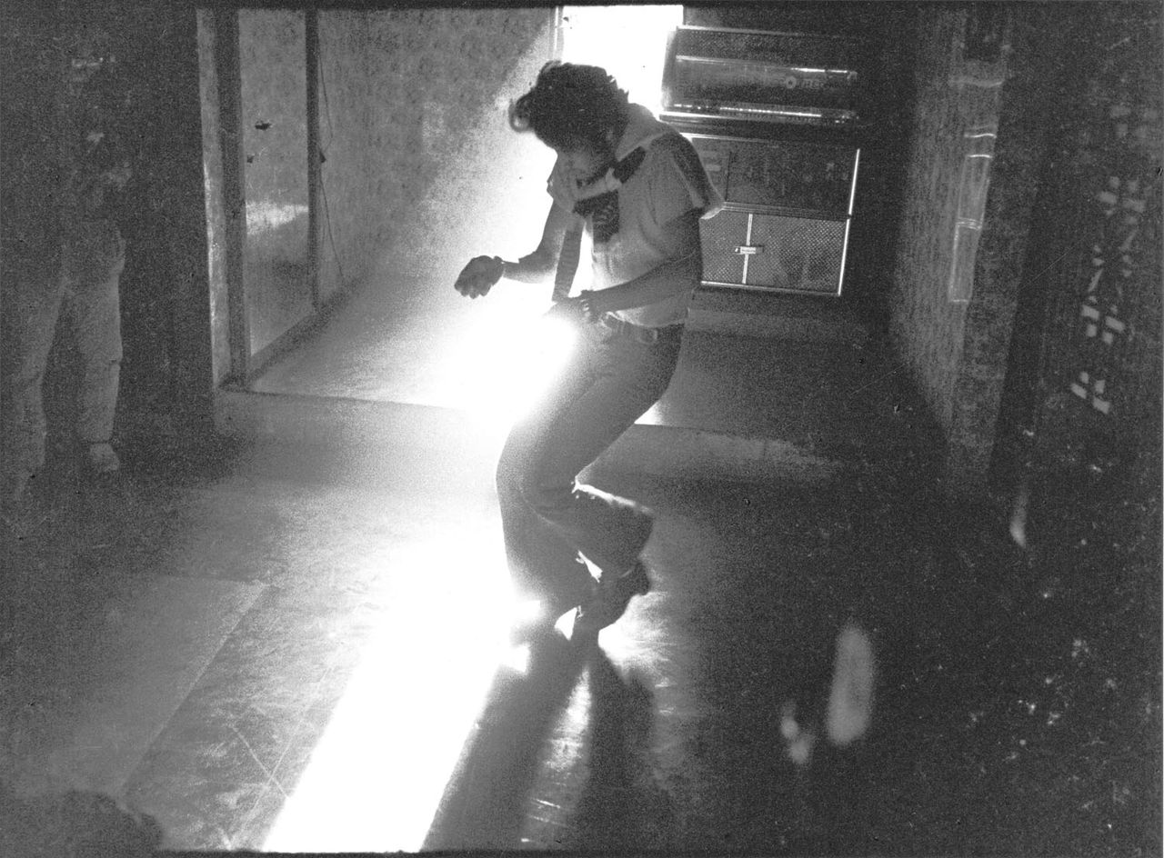 この写真を見るたびに、狂ったように踊る男の存在を確認するだろう。Tシャツにベルボトムのジーンズという格好で、鋭い光を背中に受けながら、両腕を細かく振り革靴を踏みならして、彼は永遠にここで踊りつづけているのだ。