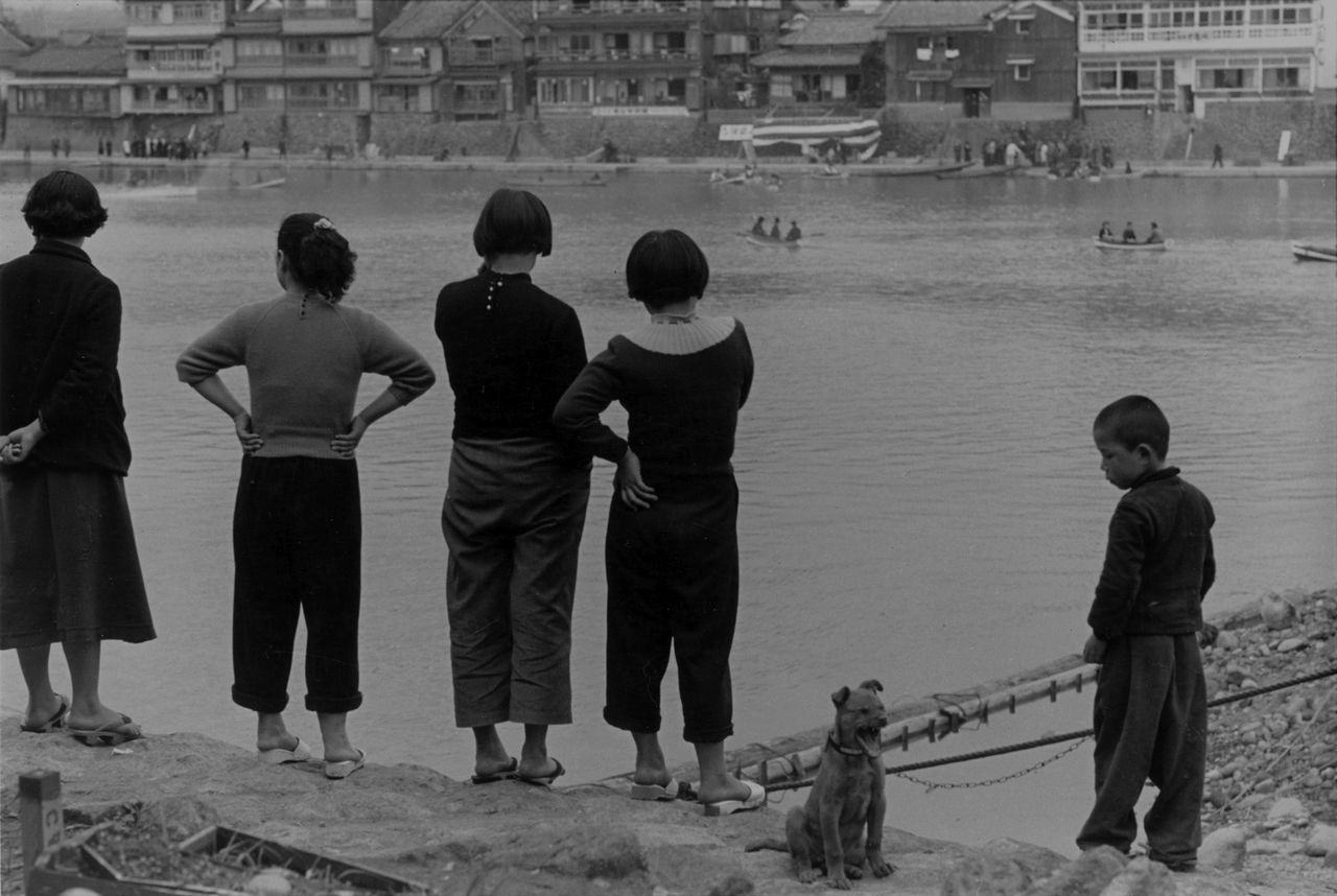 わたしの記憶ではこの写真にいる女性は三人だった。今回見直していちばん左にもうひとりパーマ頭の女性がいるのに気がついた。パーマの女性の存在感は薄い、というか若い三人の発するものが強くて霞んでいる。川には舟が浮かんでいてそこに三人の人影があることも、「三」が印象づいた理由かもしれない。