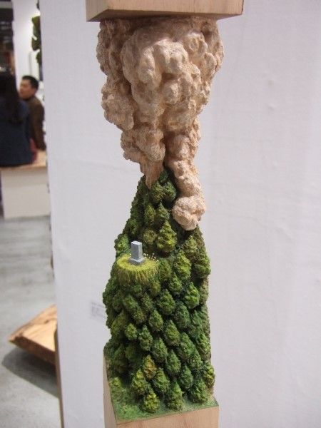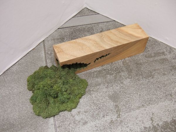 角材となった樟からこぼれ出る小さな森林、リサイクルテーマかなー爽やかだなーと感じ入りつつ題名に目をやり、《吐景》の二文字を見た瞬間、イメージが終電間近の駅のベンチを占拠して寝ゲロを吐く中年サラリーマンに固定されてしまいました。言葉の力ってムゴイ…もといスゴイ。