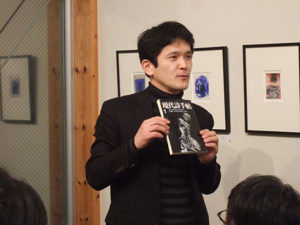 亭主の紹介によると、大谷先生にはすでに20年以上にわたってお世話になっており、亭主が編集した『資生堂ギャラリー七十五年史』に、当時まだ大学院生だった大谷先生に最年少の執筆者として参画していただいたのがその発端だったそうです。その後、竹橋の近代美術館の研究員となられ、日本のシュルレアリスム美術のエキスパートとして、「地平線の夢」展や「靉光」展などを手掛けてこられましたが、なぜか瀧口修造を正面から採り上げる機会はなかった。そこで、ときの忘れものが本年の目玉としている「瀧口修造展Ⅰ,Ⅱ,Ⅲ」には是非ともご出馬いただかなくてはと、亭主たっての希望に応え、満を持してのご登場です。すでに「瀧口修造展Ⅱ,Ⅲ」のカタログテキストも頂いており(今秋刊行予定)、15日のギャラリートークにも、工藤哲巳展でお忙しい中、貴重なお時間を割いていただきました。そういえば、カタログテキストの方も博士論文執筆と並行して進めていただいたそうで…。重ね重ねありがとうございました。