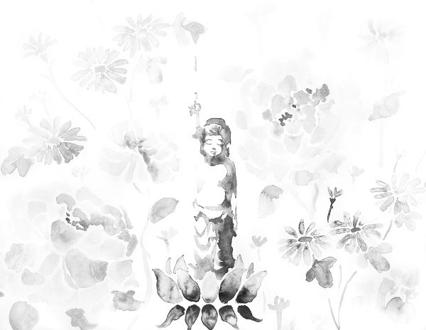 さっそく購入した筆で誕生仏と花を描いてみた。墨の色だけで春の雰囲気を伝えるのは難しいが、薄墨の色が伝われば嬉しい。