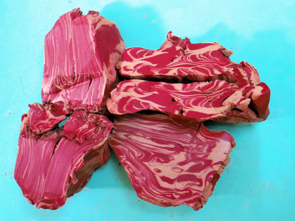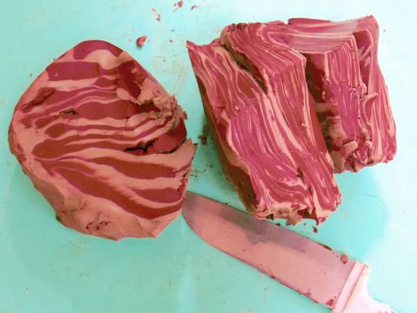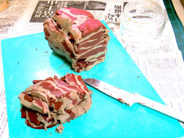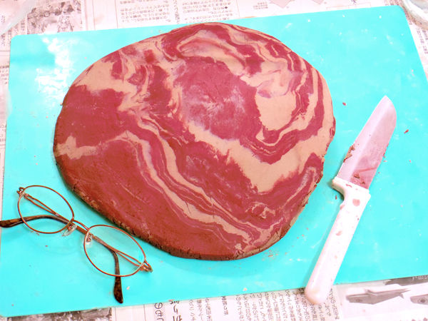 前からブレンドしようと思っていた赤い土と白い土を混ぜながら練り直しているところでした。