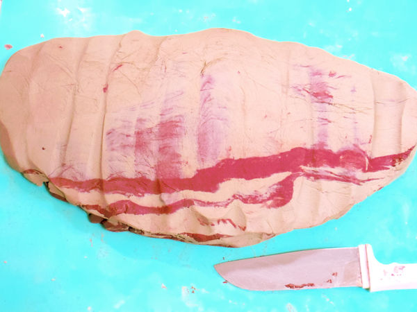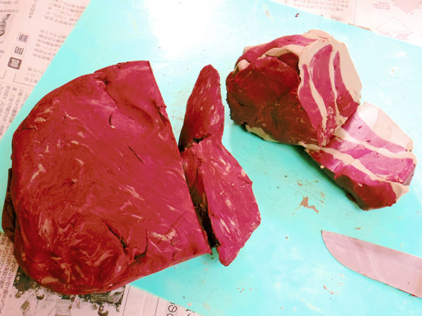 ちょっと画像の色を調整してありますが、「合成肉ってこうして作るんだよ」と子どもに言うと信じてしまいそうです。