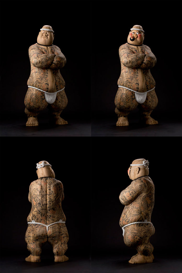 作品のタイトルが「男気」だったりするんだけど、ガンガン削った木彫作品は男気を感じます。けど、そこにほどこされたヤクザのおじさんの彫り物が妙に艶っポク生めかしく、ギャップが良いです。