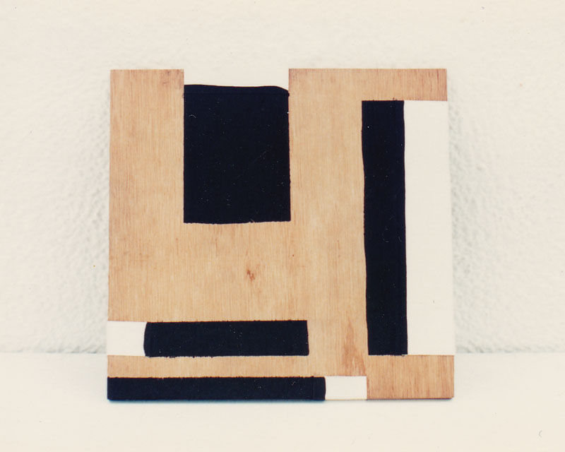 作品は小さな立体作品が多く、木・布・金属・羽毛などで構成。特に所々に色彩が粗く塗られた、荒削りの木の立体作品は菅木志雄の作品と雰囲気が似ている(資料5参照)。他にドローイング、これは立体のための習作でなく独立した作品。