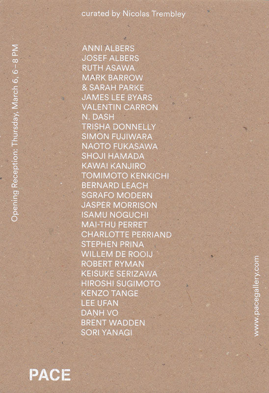 2014年2月下旬、ペース画廊から奇妙な展覧会の案内状(資料3)が舞い込む。“MINGEI ARE YOU HERE ?”〔会期:2014年3月7日~4月5日〕 瞬時、「これ何んだ?」 “MINGEI”という単語にとまどった。案内状の裏を見ると、SHOJI HAMADA、KAWAI KANJIRO、TOMIMOTO KENKICHI、〔日本への理解がまだ浅い。前二者、KANJIRO、KENKICHIは姓と名が逆だ〕KEISUKE SERIZAWA……とある。“民芸〔民衆芸術〕”の展示だと分る。