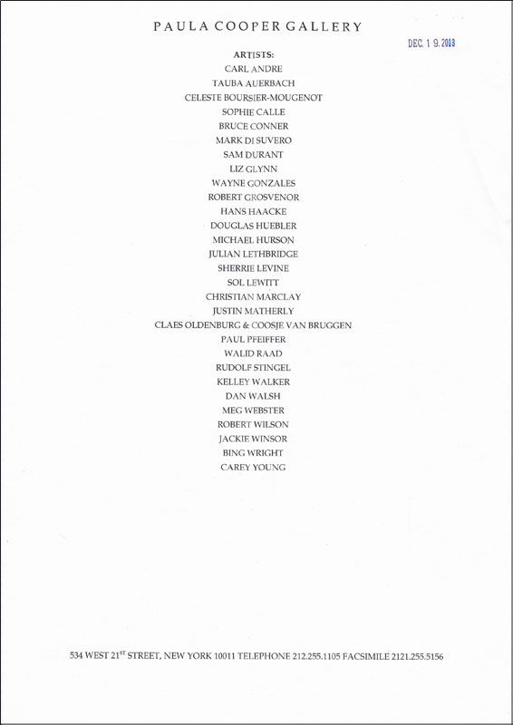 2013年12月19日付のletterが、18年ぶりにポーラ・クーパー画廊から届いた。現在の取扱い作家のリストが同封されていた。