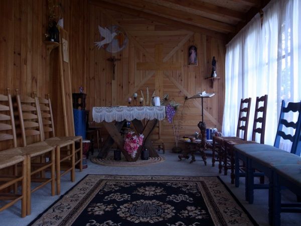 コンクへの道の途中、老婦人が手招きしている。少し休んでいけということだろうか。その好意に甘え、冷たいハーブティーを頂く。私は巡礼に行くことはできないけど、その代わりに巡礼者のために奉仕をしているのだと話してくれた。その後、小さな小屋に案内された。不思議に思って中に入ると、そこには手作りの小さなチャペルがあった。いや、チャペルとも言えないだろう。絨毯を敷き、正面の壁に十字架がかけてあるただの部屋なのだから。しかし、この小屋は老婦人が自分と巡礼者のためにつくり上げたチャペルである。何も立派な礼拝堂など無くても良い。祈るための空間はこれだけでも十分である。信仰とは祈ること。ここには老婦人の祈りを信仰に昇華させるために十分な空間があった。
