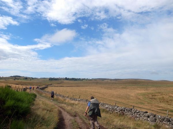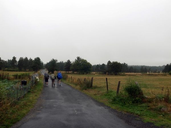 次の日、道を歩いているとポーと再会。共に歩く。ここ、オーブラック(Aubrac)はかつて難所と呼ばれた丘陵地帯であった。飢えや寒さで亡くなる人もまれではなく、見通しの悪い山道で巡礼者を狙う盗賊も少なくなかった。そのため、12世紀の初めにはすでに巡礼者のために救護所が設けられていたという。現在ではかつての森林は切り開かれ、広々とした牧場が広がっている。巡礼路は牧場を横切るかたちで続いており、何十頭もの牛が草を食んでいる中を歩くことになる。