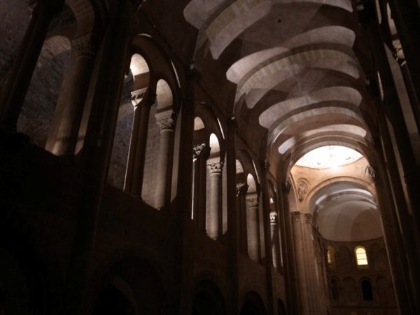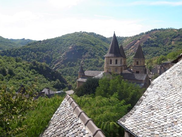 コンク(Conques) はとても美しい町である。周りを緑の山々に囲まれ、深い谷の底にひっそりと佇んでいる。町の中心にあるロマネスクの修道院付属教会がこの町のシンボルである。教会はこの近くで産出される白みがかった石によって建てられており、内部は中世の白い空間が時空を超えて現代に現れたようだ。