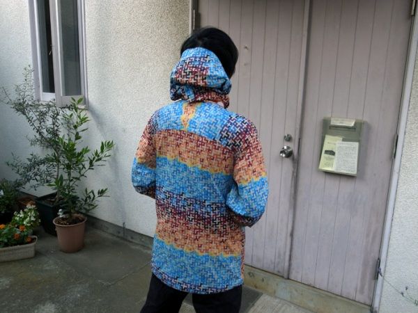 バックパックからレインウェアを取り出す。レインウェアは寒いときや雨などの悪天候時に着る服である。コンビニなどで売っているビニールカッパは雨を防ぐが、透湿性が無いために体から発生する蒸気や汗を外に放出することができない。雨は防げても、結局汗でびしょ濡れになってしまう。そのため、雨をはじき、蒸れを外に出すという防水透湿性はレインウェアの命とも言える大切な機能となる。この「水は透過させないが水蒸気は放出させる」という相反するような機能を備えているからこそ、過酷な環境でも快適な行動を可能にしてくれる。まさに画期的なアイテムなのである。