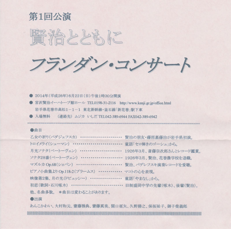 話は急に変わりますが、明日花巻に行きます。宮沢賢治イーハトーブ館で友人の石田俊子さんたちがピアノコンサートを開くので久しぶりに温泉の会もかねての小旅行です。もちろん夜は盛岡・直利庵で大宴会の予定であります。