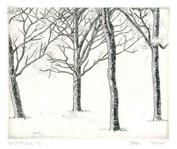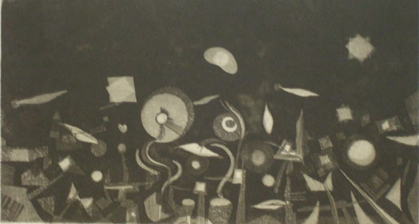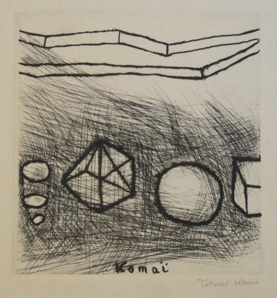 駒井哲郎はおおげさな身振りを避け、みじろぎもせず心のなかを凝視している作家だ。かれのエッチングのどれをとっても、通俗との袂別が宣言され、ただ独り道を進んでいる。この画家の姿がわたくしたちの網膜に残るばかりである。かれの孤高な精神は、わたくしたちの胸をたゆみなく純化する。