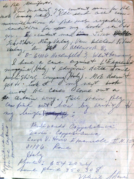 ヴァレリー・ソラナス直筆レター(1980年代)。ローマから投函されている。SCUMマニフェストについても触れらている。(筆者蔵)