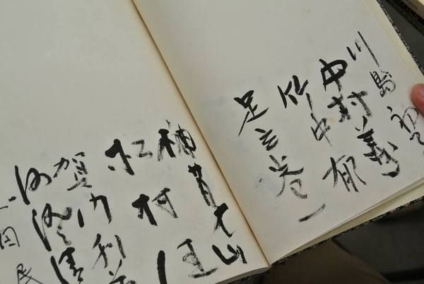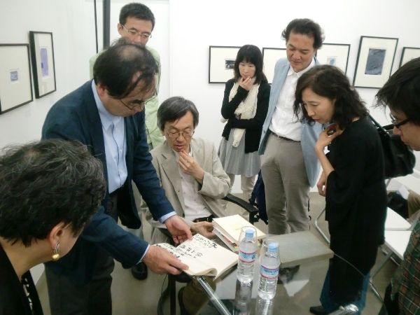 国立国際美術館の島敦彦先生が1961年の北画廊での瀧口修造展芳名簿を持ってきてくださいました、参加者は興味津々。