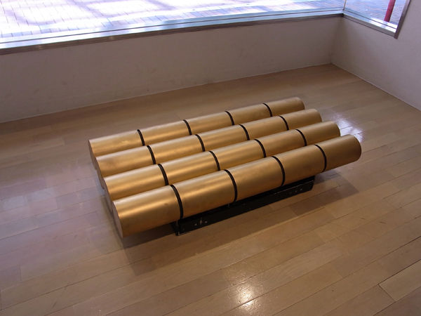 鉄製ワイヤの張力と圧力で、金属体を中空に固定、奇妙で不思議な空間を創出する篠田守男(1931~)の代表作。