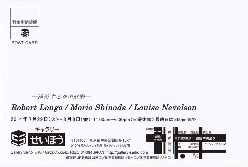 銀座で開催中の「浮遊する空中庭園 ロバート・ロンゴ、篠田守男、ルイーズ・ネヴェルソン」展をご紹介します。