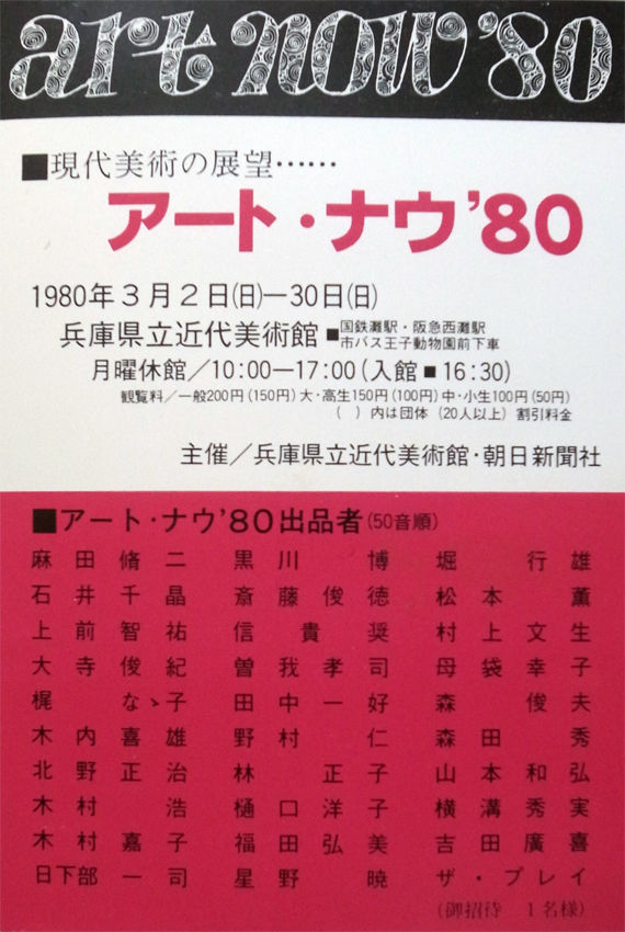 70年代後半、ギャラリー16で兵庫県立近代美術館の中島徳博氏と出会った。酒宴が取り持つ縁で懇意にしていただくようになったが、読売新聞で同僚の山脇一夫氏と共に寄稿された『ミニ作家論』の為に京都へも頻繁に足を運ばれていた時期だと思う。写真家の中山岩太を調査されていた事もあり、関西の新興写真の歴史にも詳しく、マン・レイについても関心を持っておられた。氏が勤務する美術館は神奈川県立近代美術館に次ぐ国内では2館目の開館(1970年、村野藤吾設計)となった近代を専門に扱う県立美術館で、エルンストやルドンやアンソールなど、わたしの関心領域に繋がる作家の展覧会や「アート・ナウ」と冠して関西の中堅や若手の美術家を取りあげた独自企画などに時代への鋭い目配せを感じる活動で注目を集めていた。