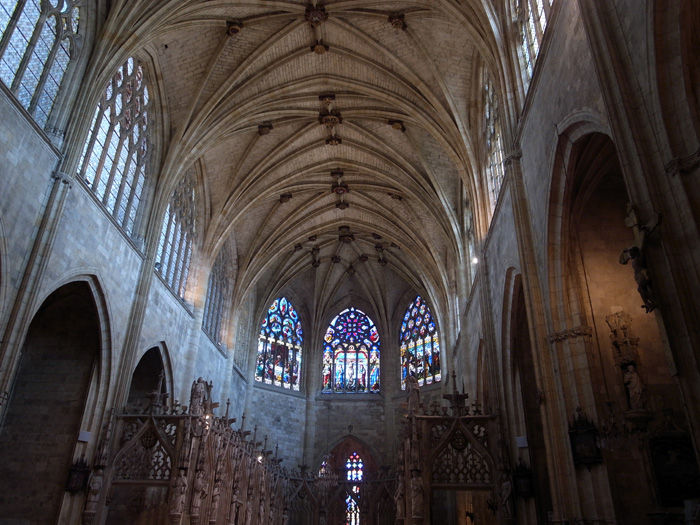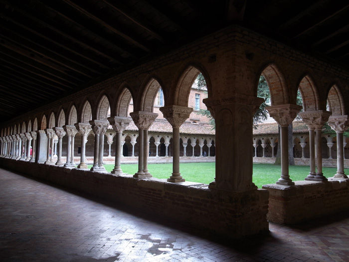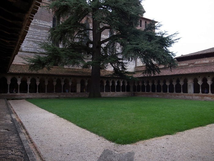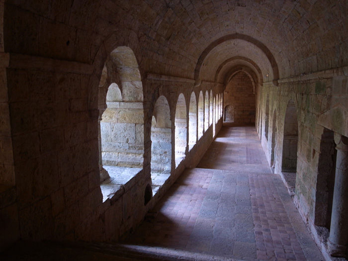 サン・ピエール教会を訪れ、回廊に足を踏み入れる。キリスト教建築における回廊とは、修道院や教会の中庭を囲む屋根のついた廊下のことである。司祭や修道士たちは、この回廊を歩きながら瞑想したのである。そこには2本柱と1本柱が交互に立ち並ぶ116本の繊細でリズミカルな列柱と片流れの木の屋根によって生み出された見事な空間が広がっていた。朝の淡い光が入り込みなんとも幻想的である。一言でいうと繊細で女性的な回廊である。以前、訪れた南仏のル・トロネ修道院の回廊は柱が分厚く、質実で男性的であるのと対照的である。同じフランスでありながら、装飾を容認するクリュニー派と、一切の装飾を禁じて清貧を旨とするシトー派ではつくりが大きく異なる。