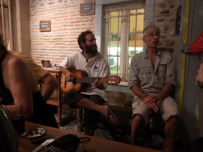 夕食はオーナー自身の手料理でたっぷりの野菜サラダと牛肉の煮込み料理、パンとチーズにワインであった。他の巡礼者たちともテーブルを囲み、食事を共にする。青年の奏でるギターが響き、みんなが楽しく饒舌に語らい宴が続く中、錬金術師はどこか遠くを見つめていた。幸せな夜の時間が流れていった。
