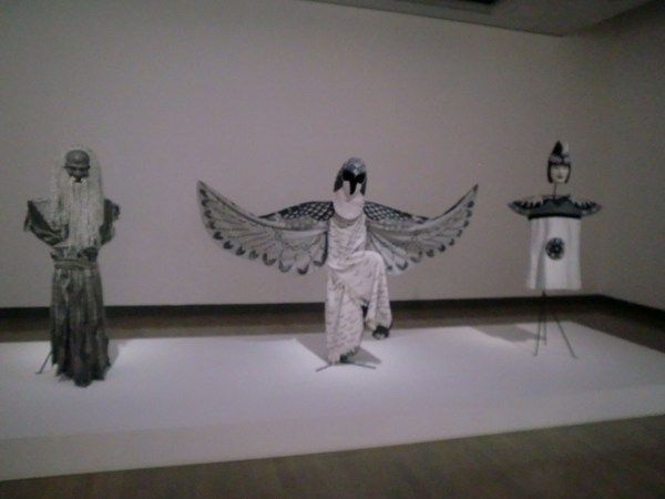サイモン・スターリングアイルランドの詩人W.B.イェーツが日本の能に触発されて書いた詩劇『鷹の井戸』の1916年初演当時の写真から、面や衣装を再現した作品。