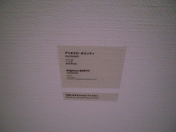 アリギエロ・ボエッティ(1940~1994年没)の平面作品。1960年代にイタリアで生まれた先鋭的な美術運動「アルテ・ポーヴェラ」に参画。伝統的な美術素材を捨て、工業化社会からこぼれ落ちる廃棄物等を素材として取り上げた。