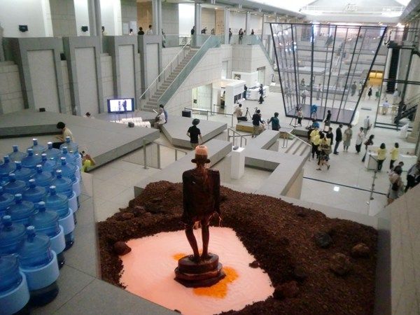 300㎥の大きさに及ぶ美術のためのゴミ箱をエントランスホールに設置、作家たちが失敗作や過去の作品を持ち寄り捨てる。