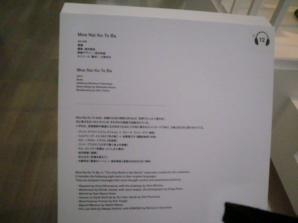 Moe Nai Ko To Baの“世界でただ一冊の本”はずいぶんと人気でした。レイ・ブラッドベリの小説『華氏451度』へのオマージュとして制作されたもの。スターリン政権下に口伝で残されたアンナ・アフマートヴァの詩など7本のテキスト、ナチスの爆撃を避けて空っぽになったエルミタージュ美術館を描いた素描、志賀理江子の写真等が収録されています。造本のファンには必見。