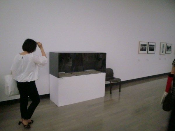 ドラ・ガルシアの作品。焚書をテーマにしたレイ・ブラッドベリの小説『華氏451度』を鏡文字で“複製”した本がうずたかく積んでありましたが、これは持ち去り厳禁(読むのは可)。