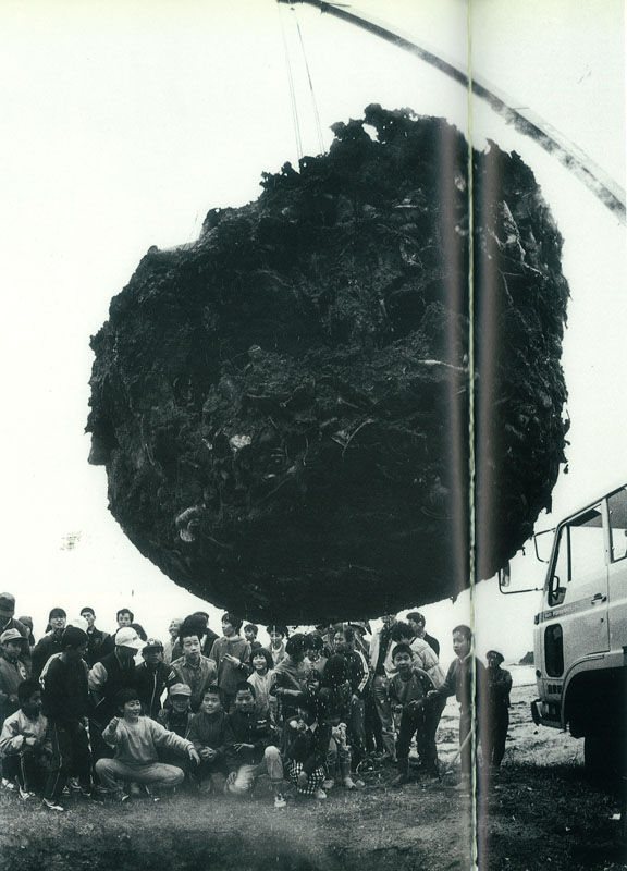 1987年に山口県二位ノ浜の海外に打ち寄せられたゴミを焼いて固めた作品「お好み焼き」をはじめ、80年代に行われた殿敷の前衛的なインスタレーションを豊富な写真でその軌跡を辿ろうとする内容。