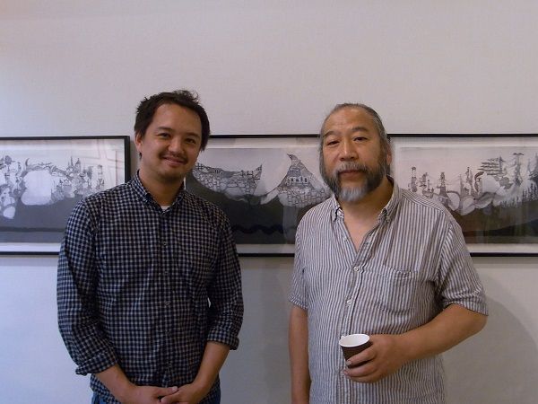 光嶋さんと、2012年の銅版画展で光嶋さんの”Landscape at Night”を刷った白井版画工房の白井四子男さん。