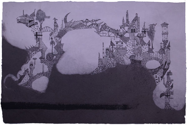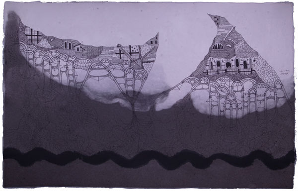 現在開催中の「光嶋裕介新作展―幻想都市風景」より和紙に描かれた作品のご紹介です。