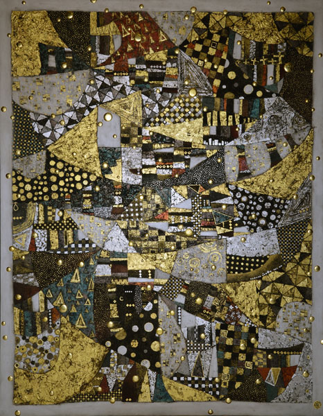 箔画(木パネル、漆、金・銀・プラチナ箔、石炭、樹脂、アクリル絵具)