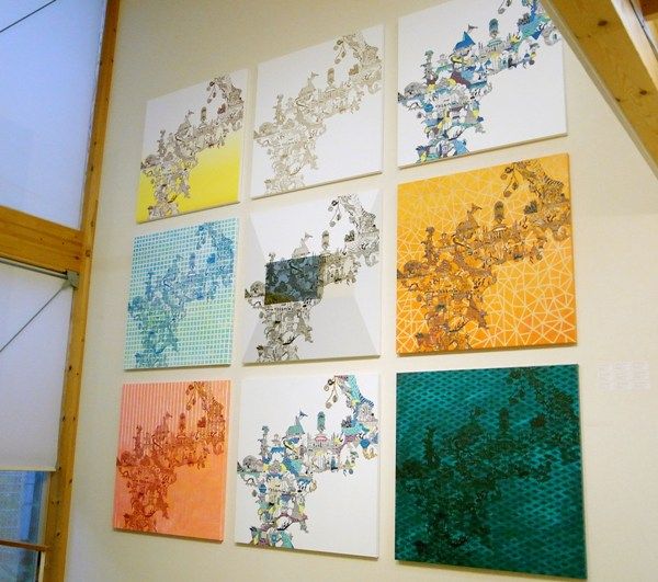下絵を書かれるのでしょうか。身体で覚えているビジョンをリズムにのって出力している感じがよかったです。チクチク書く作業は楽しそうです。色がとても美しいと思いました。水色の色鉛筆の作品が印象に残りました。