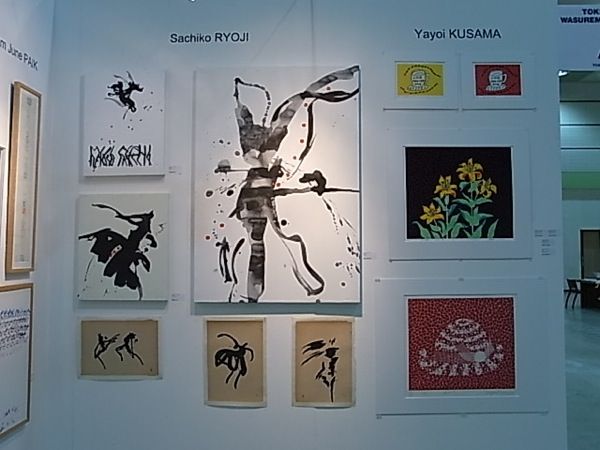 プレビューでは残念ながら「興味を持った」以上のお客様はいらっしゃいませんでしたが、二日目の一般公開初日に画廊のエース、秋葉シスイさんの大作が売約で不敗神話を更新、次いで三日目に草間彌生作品が、四日目にナム・ジュン・パイク作品と、一日おきに売約となり、去年まで社長と亭主に丸投げしていた書類作業をこなすことに胃痛を感じながらも作品が売れることは嬉しいと複雑な思いを感じております。
