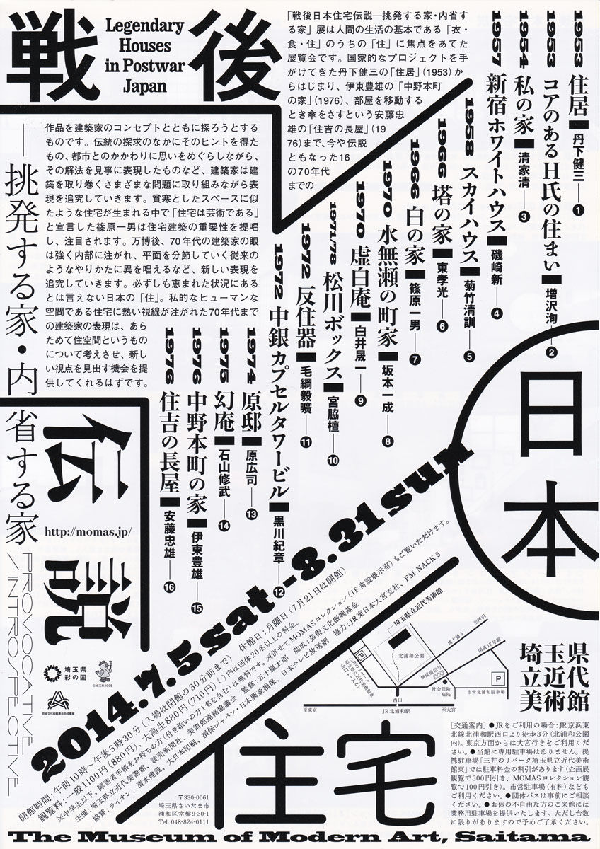 ●ご紹介が遅くなってしまいましたが、埼玉県立近代美術館の「戦後日本住宅伝説―挑発する家・内省する家」展も、磯崎先生はじめ戦後の伝説の「住宅作品」に光をあてた展覧会でとても面白い展示でした。
