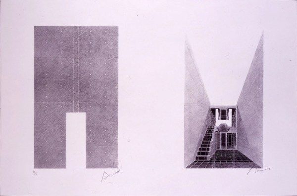 ※磯崎新銅版画集「栖 十二」(すみかじゅうに)の中の1点。手彩色のA版と、単色刷りのB版があります。