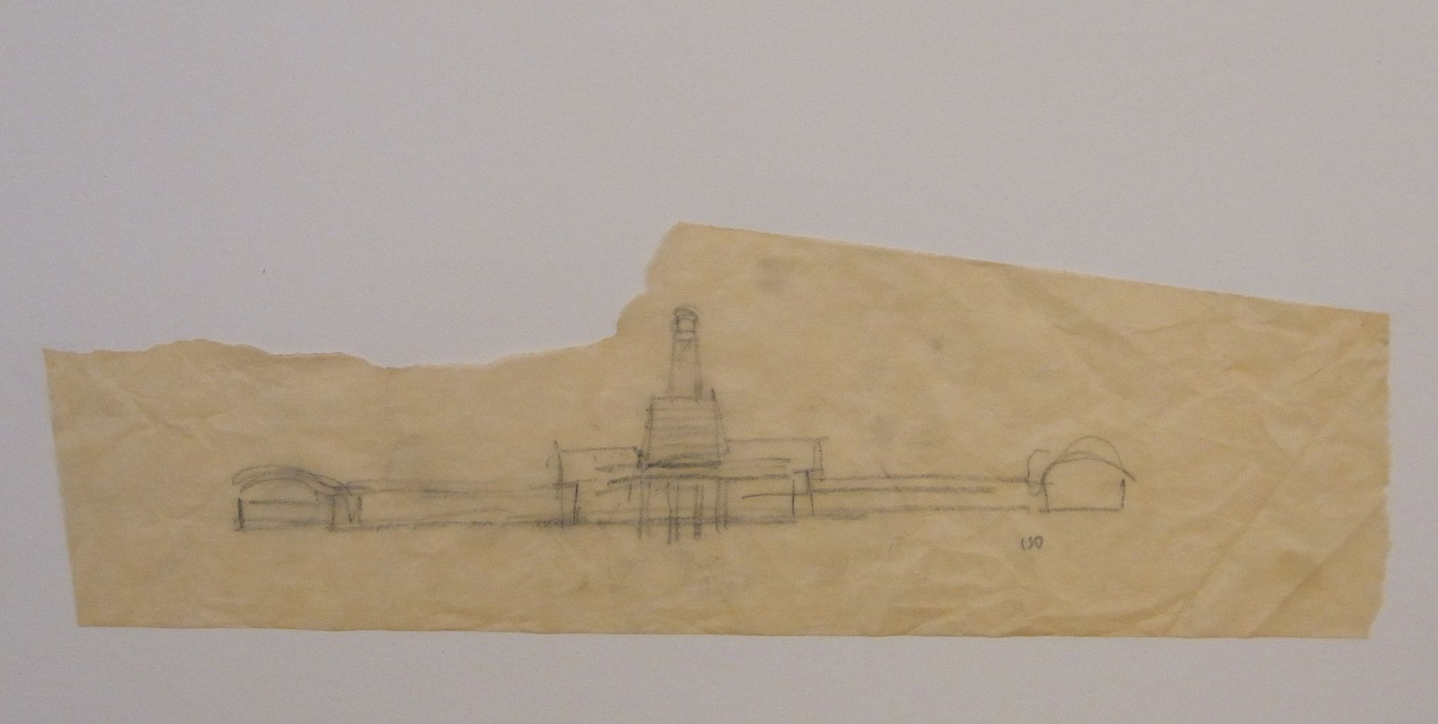 4階には磯崎さんが世界各地で描いたスケッチが展示されており、写真に収めるのではなく自分で描いて記憶に留めるそのスタイルに圧倒されてしまいました。頭ではそう思っていても、それはなかなか一貫してできないからです。何十冊ものスケッチブックが開いたかたちで展示されていましたが、今回は見ることが出来ない他のページにはどんな景色が描かれているのか見てみたいなと思いました。