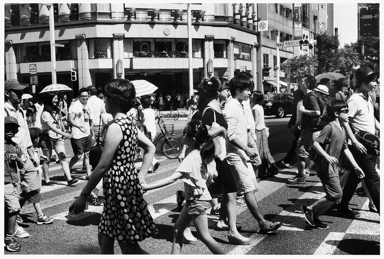 晴海通りの信号が変わったとき、そこを渡りはじめた人をとらえたものだ。