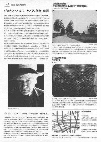 大阪の国立国際美術館の島敦彦先生からもメカス上映会の案内をいただきました。