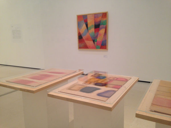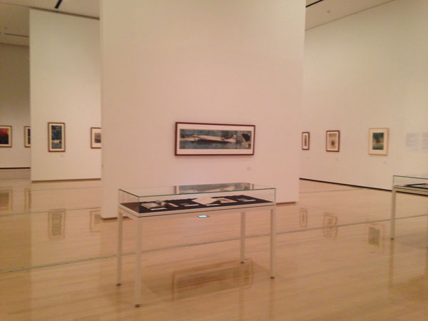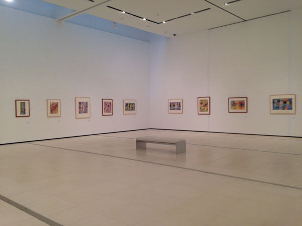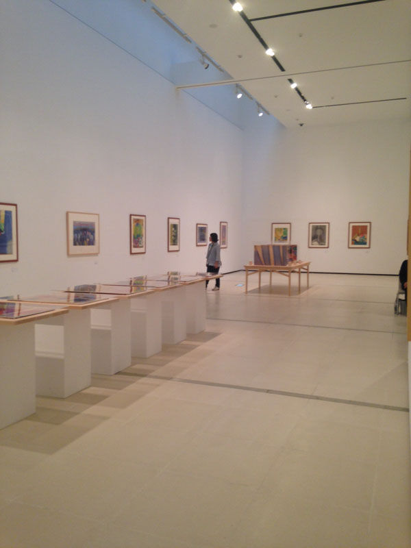 初期(1955年)から制作が途絶した1982年までの多色木版が中心ですが、墨絵、水彩、コラージュ、パステル、油彩、エッチングも展示。